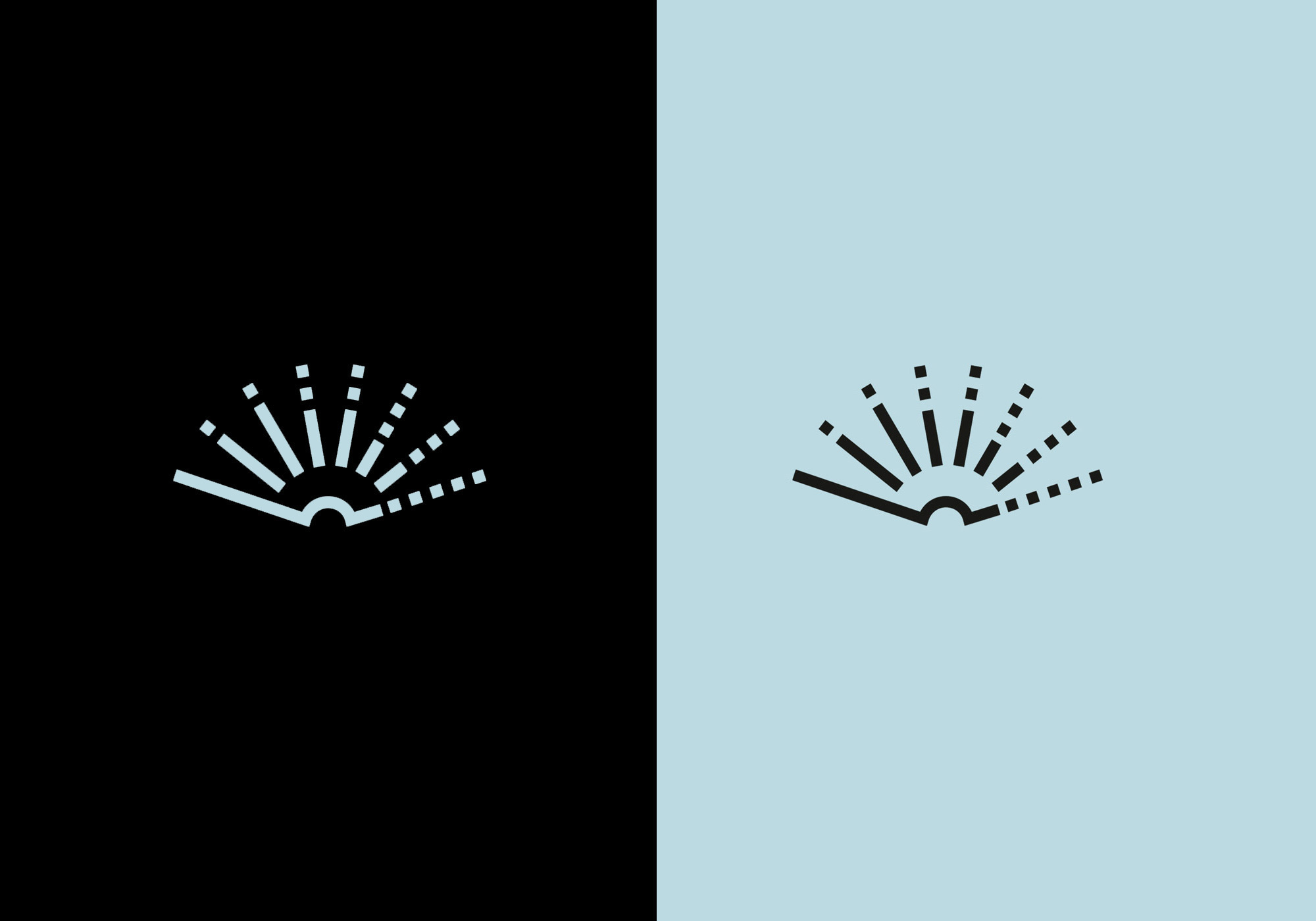 Les pages s’échappent sous forme de rayons, comme un soleil qui se lève, incarnant le rayonnement culturel et intellectuel du lieu. Cette imagerie exprime l’idée que la médiathèque n’est pas seulement un espace de consultation mais un lieu vivant qui éclaire, inspire et diffuse le savoir dans la ville. Les rayons se transforment progressivement en pointillés carrés, rappelant la forme des pixels. Ce traitement graphique marque la transition fluide entre le papier et le numérique, illustrant l’intégration harmonieuse des outils numériques dans les pratiques culturelles et éducatives. Il souligne la modernité de l’institution tout en respectant ses racines traditionnelles.